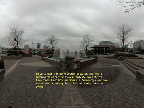 The work “location notation” consists of a series of panoramas of city locations. The goal of the piece is to give the engager a feeling of a stroll in a city, where one has the time to observe the banal occurrences of nature in the urban landscape and to contemplate the “natural.” Hot spots will link to text statements or another panorama. Control clicking on an empty hotspot will bring up a dialog box that you can input your own comments. In order to engage this site you will need shockwave plug-in, which you can find here and an internet connection. Comments to the artist D.Barth can be emailed here. |
